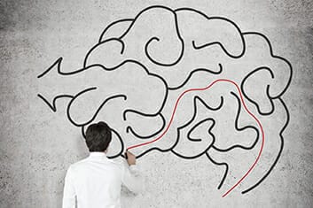 businessman drawing brain on a concrete wall